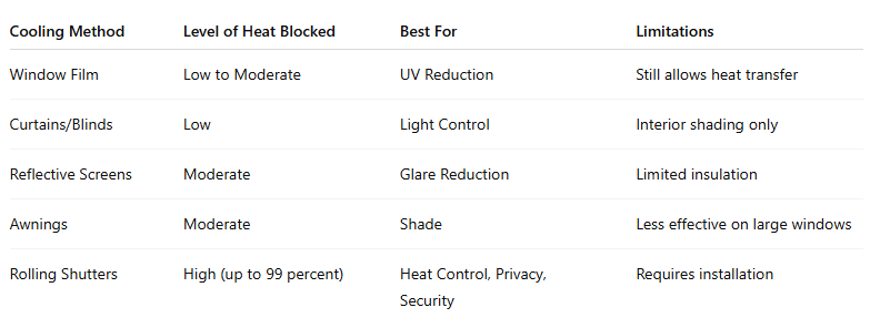 Most popular cooling tools work reactively, meaning they help after heat has already entered the home. Rolling shutters prevent heat entry from the beginning.