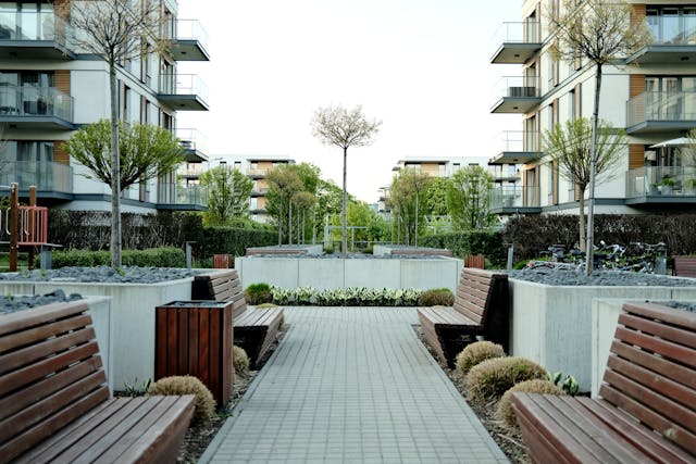 Permanent benches, cube stools, or curved seat walls built from concrete can blend into your garden while reducing clutter. Compared to wood furniture, they last longer and require no storage during winter.